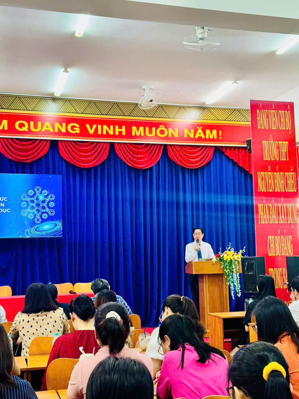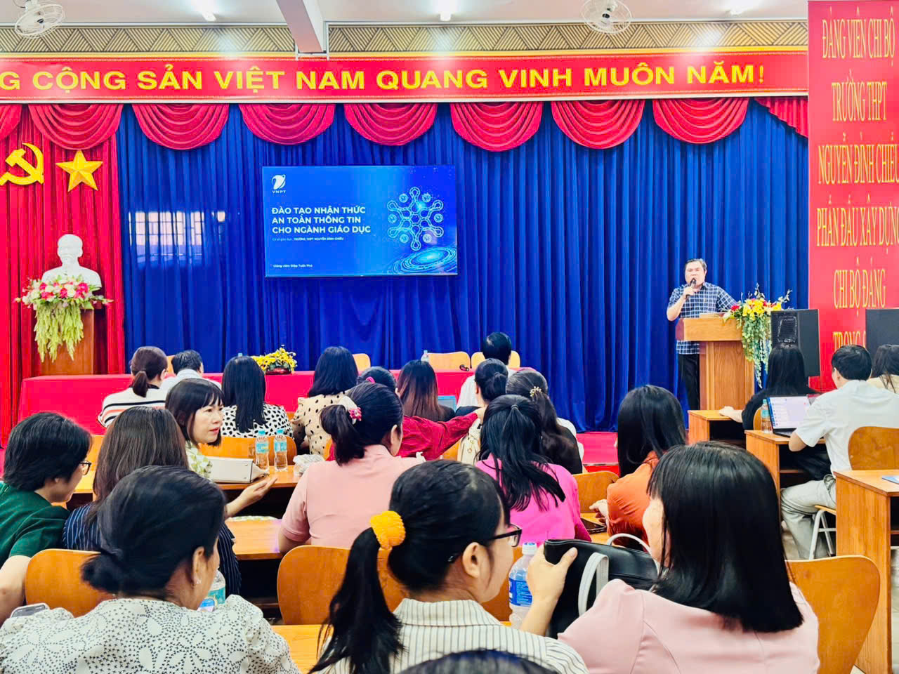 🌺🌺Thực hiện kế hoạch trên, sáng nay, ngày 7/02/2026, Trường THPT Nguyễn Đình Chiểu đã tổ chức buổi tập huấn cho tập thể cán bộ, giáo viên, nhân viên với chủ đề “Đào tạo nhận thức an toàn thông tin cho ngành giáo dục” do giảng viên Diệp Tuấn Phú- Phó Giám đốc VNPT Thủ Dầu Một trực tiếp triển khai.