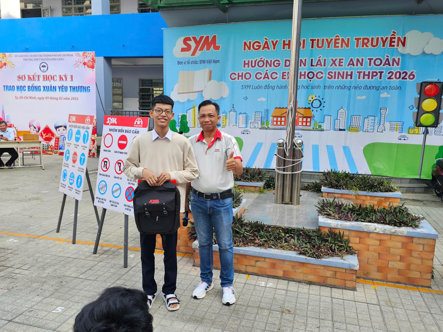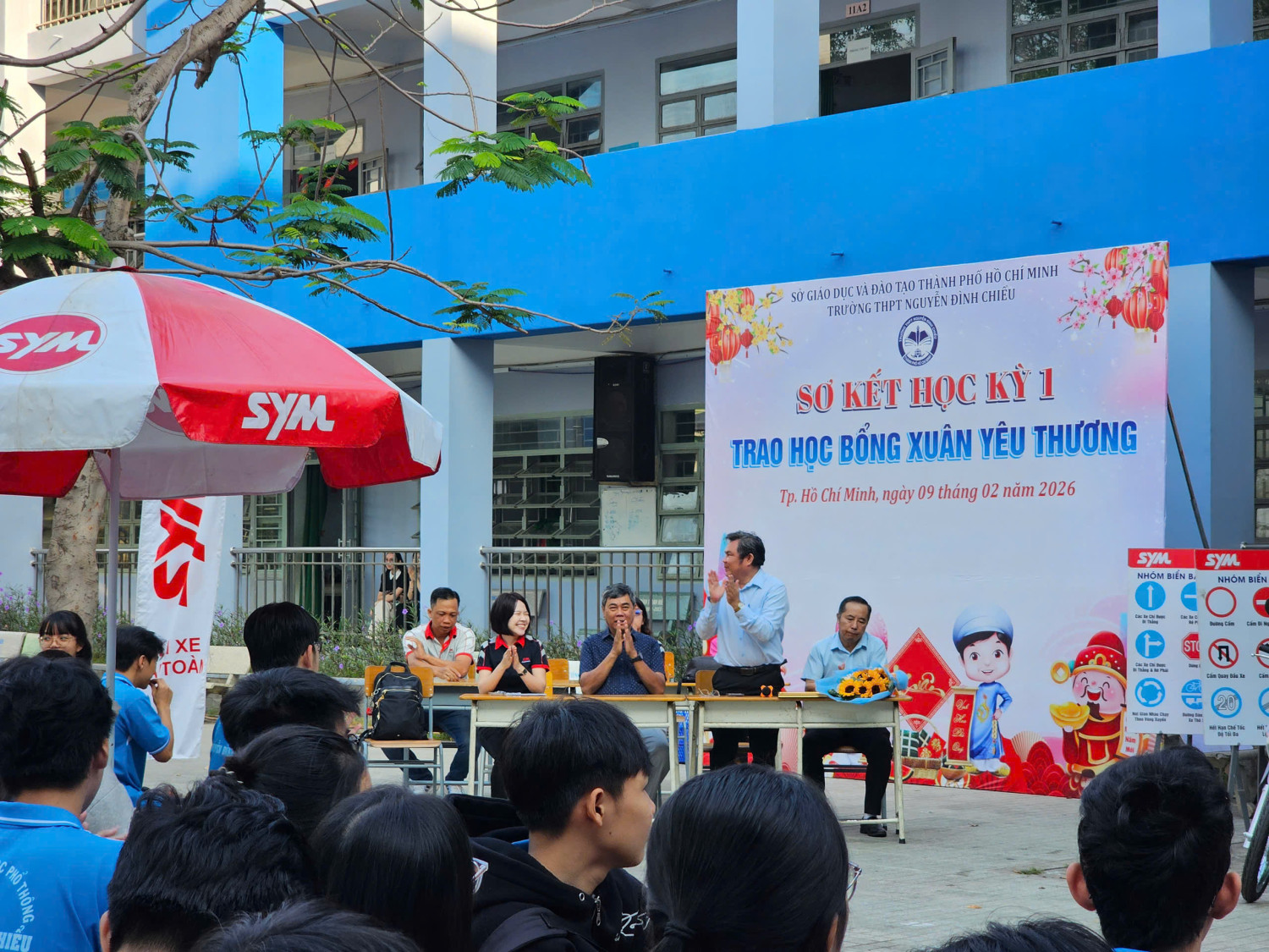 Căn cứ Kế hoạch số 03/KH-LXAT ngày 16 tháng 01 năm 2026 về việc tổ chức chương trình “Hướng dẫn và Tuyên truyền Lái xe an toàn” đã được thống nhất giữa Công ty SYM Việt Nam (VMEP) và Trường THPT Nguyễn Đình Chiểu, sáng ngày 10 tháng 02 năm 2026, chương trình đã được tổ chức thành công tại khuôn viên Trường THPT Nguyễn Đình Chiểu.