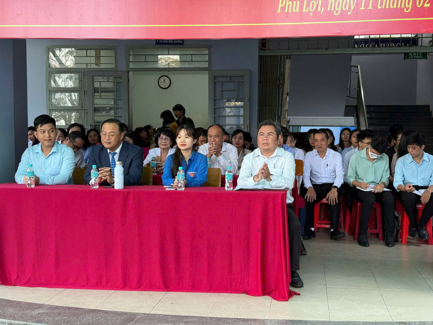 -Tham dự buổi sơ kết, về phía lãnh đạo địa phương, nhà trường vinh dự được đón tiếp đồng chí Nguyễn Minh Nguyệt – Phó Chủ tịch Ủy ban MTTQ Việt Nam, cùng Bí thư Đoàn phường Phú Lợi.